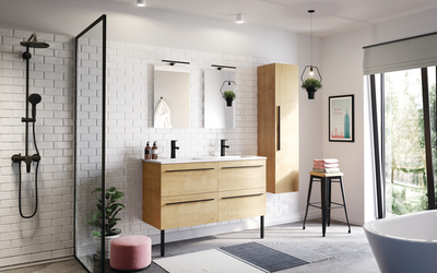 La gamme Primaro propose des meubles de salle de bain de 46 cm de profondeur. Un petit gabarit de meuble pratique avec un faible encombrement. Idéale pour les petits espaces, cette gamme apporte néanmoins un maximum de rangement avec une hauteur de caisse de 60 cm.